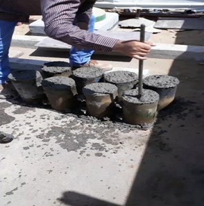 3- اخذ عينات اسطوانية للخرسانة الطازجة